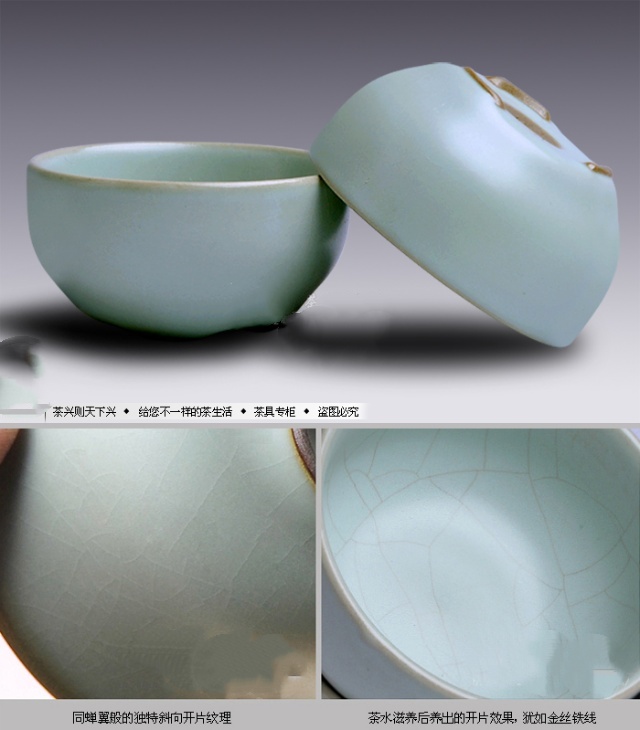 1、保养,不能摔伤自然不用强调,要注意每次用后应将杯具内外清洗,也不要沾上油污。2、闲暇时候可用茶巾或者养壶笔沾茶汁滋润汝瓷表面,逐步欣赏开片纹路变化,慢慢欣赏蝉翼纹之形成和变化过程,最终逐步养成优美的纹理和古韵味。3、使用后将残存茶渣清洗干净晾干,置于茶盘或者雅室。4、杯具品茗是本分,要经常使用才好,不用束之高阁。只有时常使用、观赏其美学变化,才能感悟其文化内涵和历史。