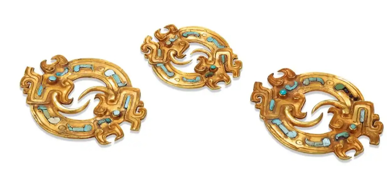 战国纯金嵌松石双夔龙璧三只,市场价约40W