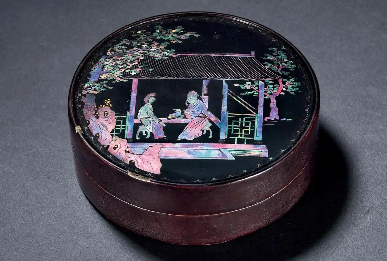 清 黑漆嵌螺钿盖盒,市场价约1.5W