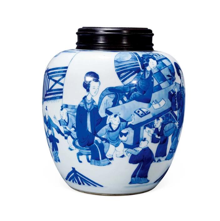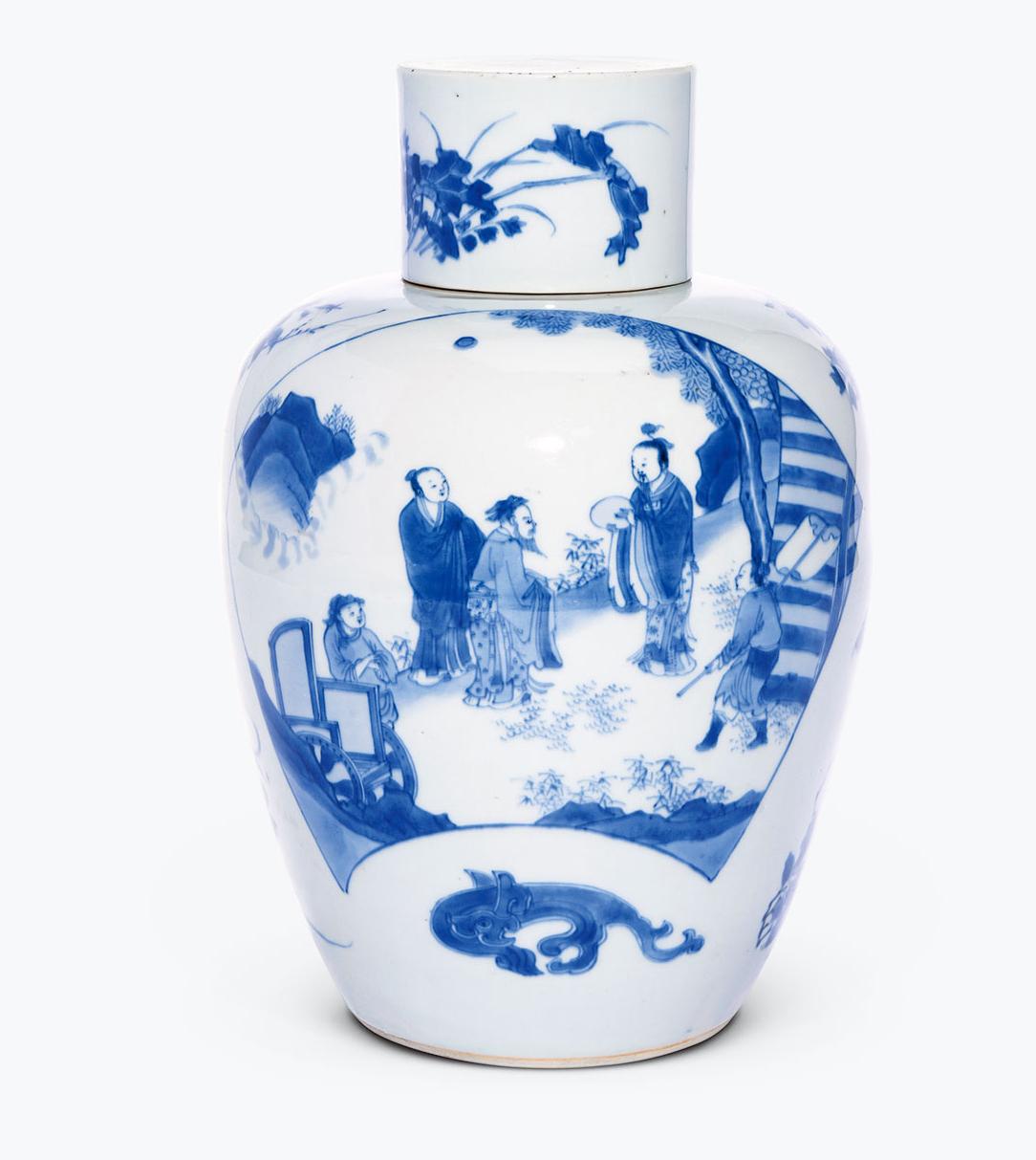 2.明崇祯青花开光陆绩怀橘图盖罐