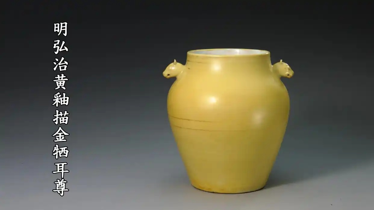 上篇文章,我们讲了明代成化时期的青花的非凡造诣,其实成化时期的黄釉瓷器并不逊色于斗彩、青花,但为何不及后二者声名显赫?那是因为成化皇帝的儿子弘治把黄釉的烧造,推到了前所未有的高度,弘治时期的“娇黄釉”才敢称是黄釉之冠,故宫博物院馆藏“黄釉描金牺耳尊”便是此时期的代表作。民间以生动鲜活的“鸡油黄”来称谓弘治时期的黄釉,“娇艳、莹润、明亮……”,历代文人们不吝赞美之词,更使得弘治黄釉熠熠生辉。