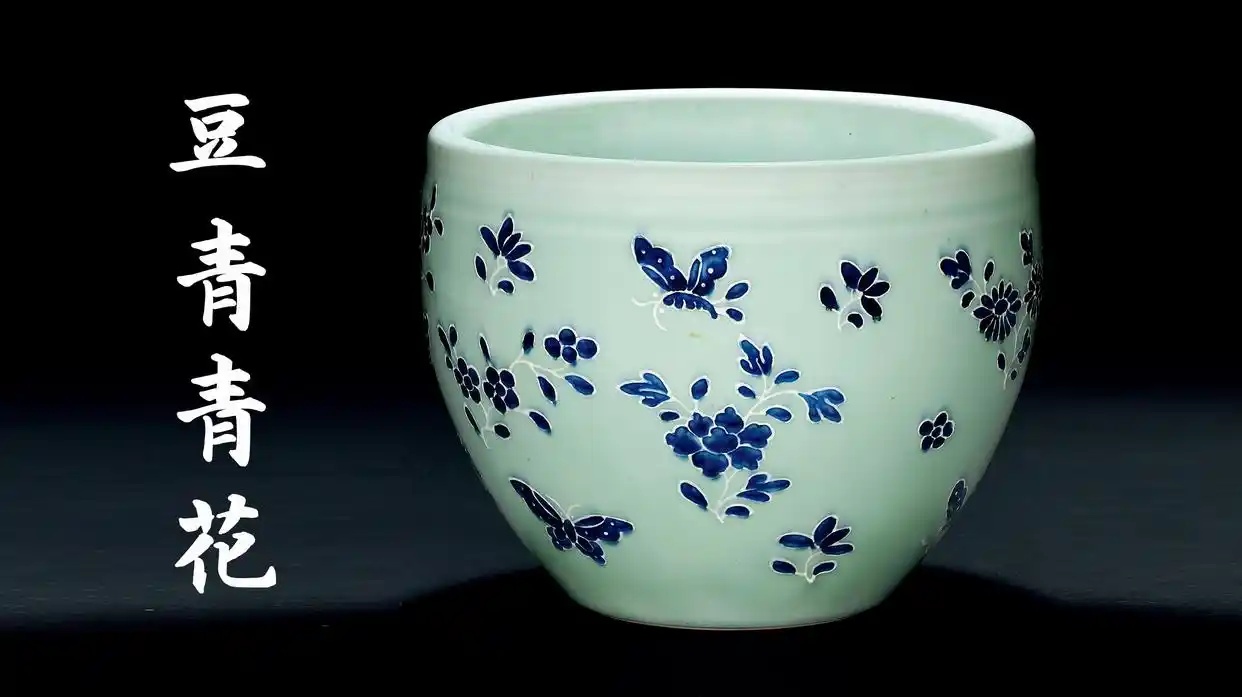 豆青釉起源于宋代龙泉窑,是单色釉的典型代表,取名豆青,意思是类似豆子的颜色。豆青釉色在宋、明两代呈淡绿透黄,到了清代则更为接近纯绿。清朝以“康雍乾”三朝为代表,在豆青釉上创新地运用了青花和矾红等颜料绘画,并进行二次烧制,所成器物别致淡雅。