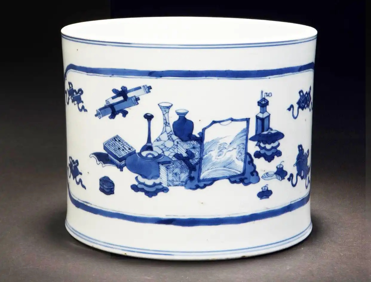 明清时期青花瓷画片种类繁多,博古纹便顺理成章的被景德镇的画工们绘画于青花瓷之上,用文绉绉的话讲,说博古纹寓意高洁清雅,体现文人情怀,用咱老百姓的大白话说,就是有逼格、够腔调。