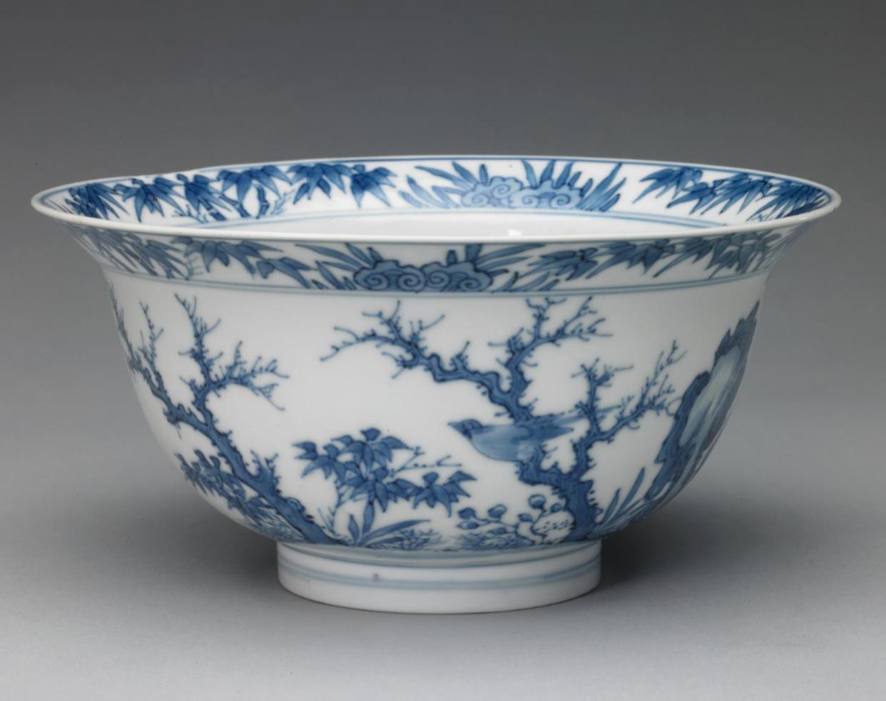 清代中期,国力强盛,文化大发展。反映在瓷器上的花鸟纹饰也变的繁缛精细,青花中的鸟儿或枝头鸣叫,或空中振翅,尤其在乾隆朝,之前几乎不见的喜鹊纹饰被大量的绘画在青花瓷上,梅花星罗、喜鹊登枝,都在昭示着政治的清明和经济的繁荣。