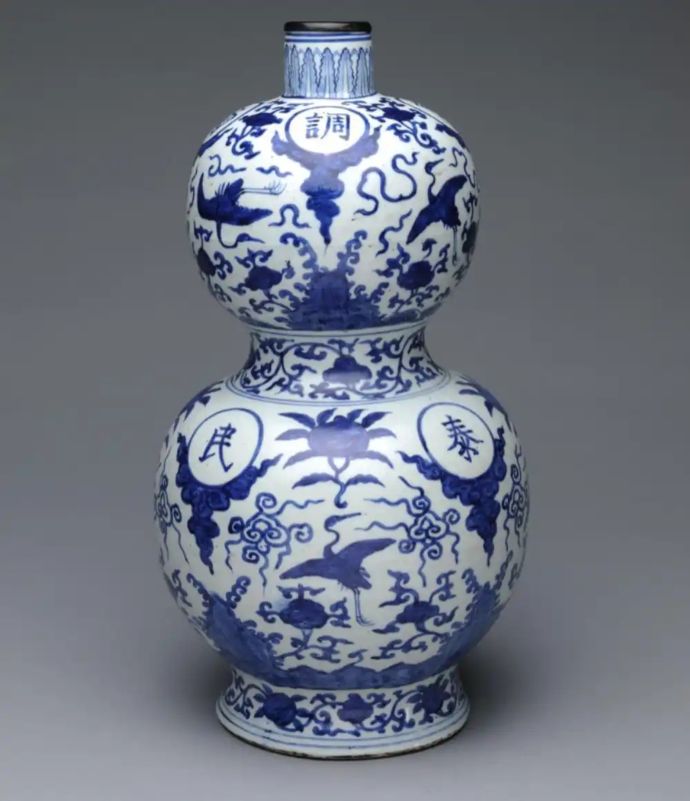 嘉靖款青花“国泰民安”云鹤纹葫芦瓶