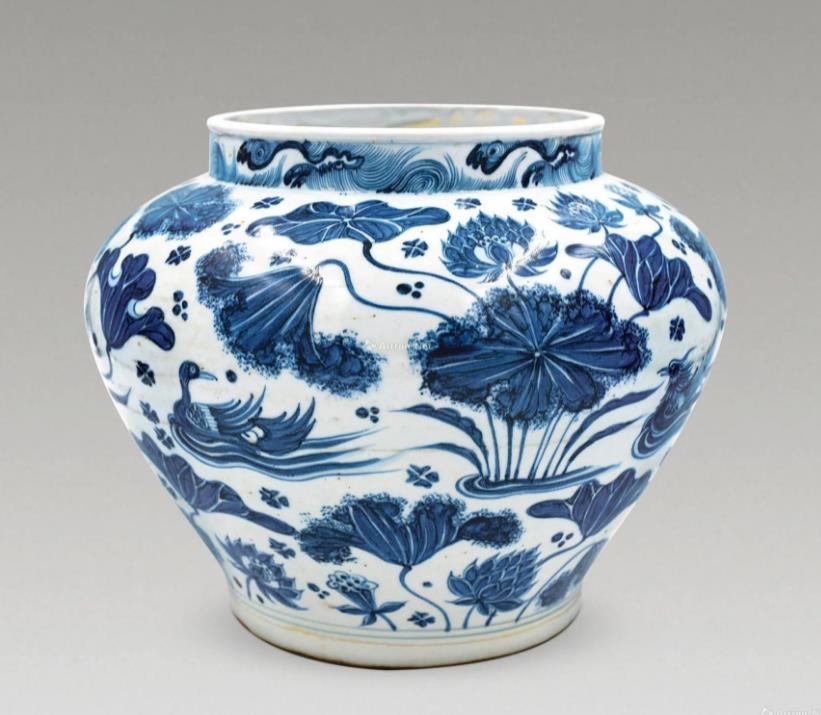 因为鸳鸯都是成对的生活在一起,自古人们便把鸳鸯视为纯洁爱情的象征。青花中鸳鸯多与荷塘相配,且都是成对出现,是汉族传统吉祥纹样,寓意爱情美满,出双入对。