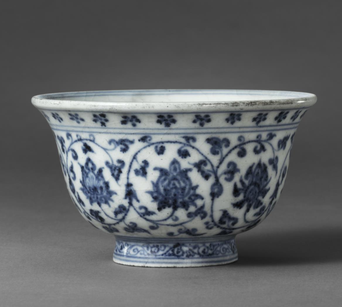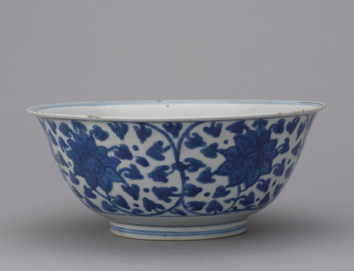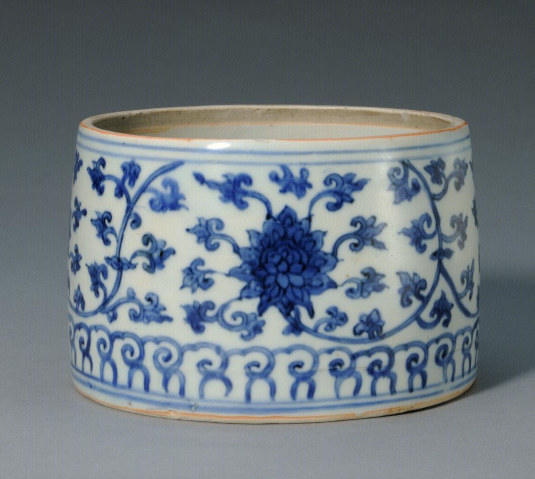 缠枝纹,又叫“长寿藤”,是青花瓷器最常见的辅助纹饰之一,尤其以缠枝莲纹为最常见。缠枝纹最主要的特征是植物的枝蔓以S形纠缠无限延续,生生不息,寓意吉祥。
