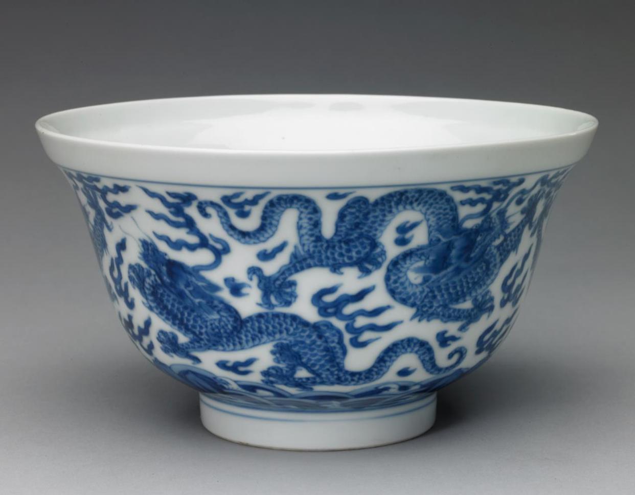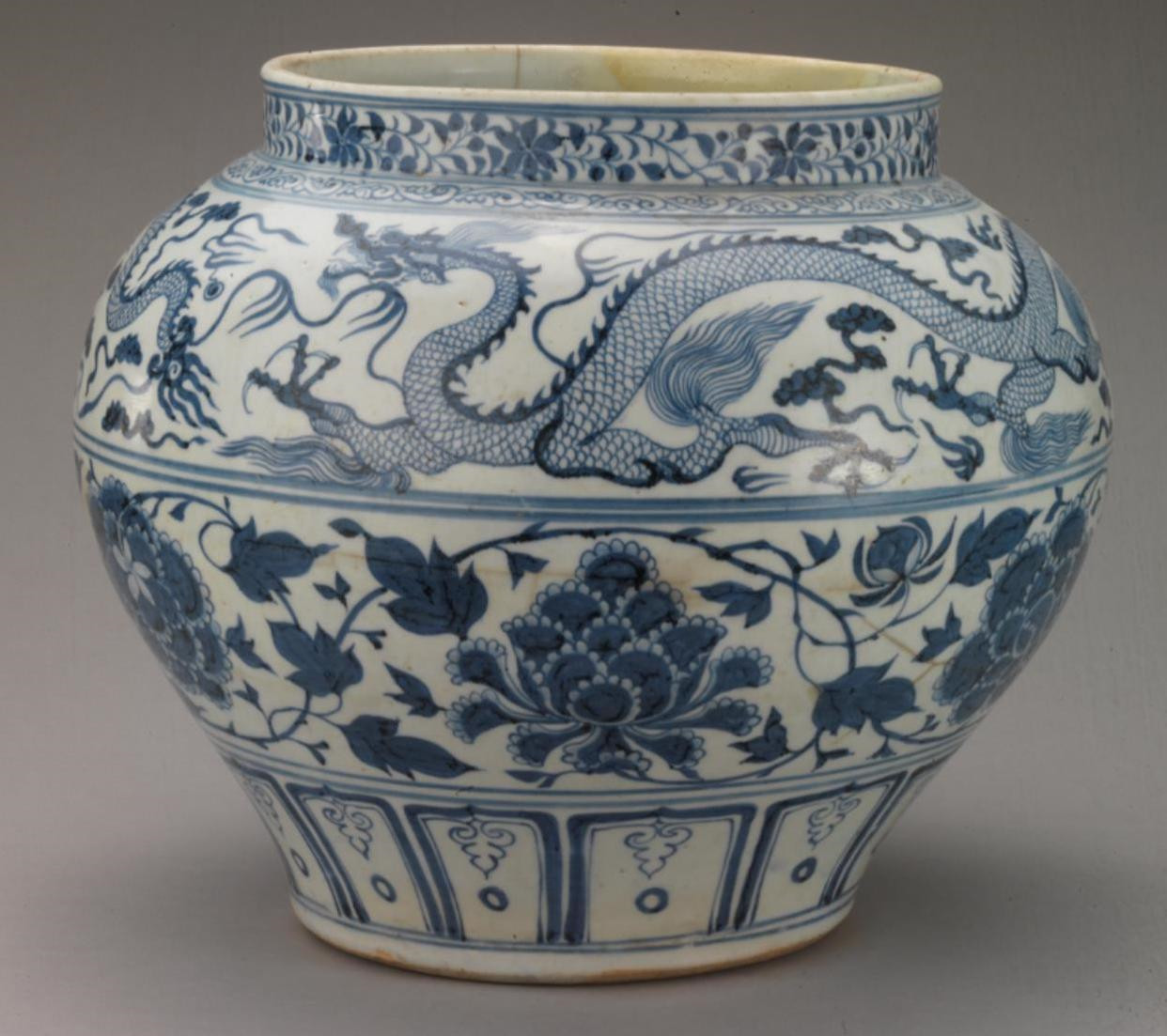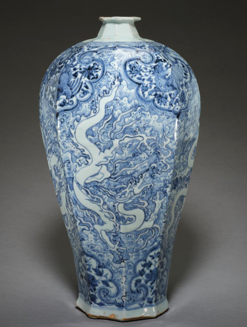 自元代始,龙纹便被绘于青花瓷上,凶猛、强势,符合元朝政府武治的特征。