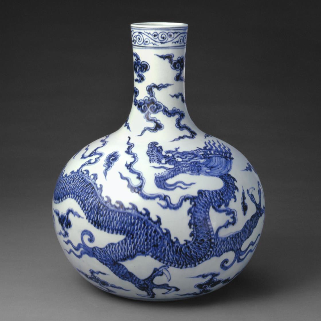 随后的明清时期,青花瓷纹饰中的龙纹越来越多,尤其是在官窑中。随着时间的前进,各朝各代虽龙的形态各有不同,但龙纹绘画越来越精细,是不争的事实。