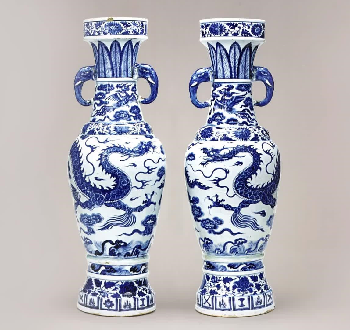 这一日来了位古董商人,与老僧讨价还价之后,最终抱走了这对青花瓷瓶,直奔琉璃厂。要说这对大瓶有多大的来头,那可真是了不得!它就是被称作元青花的老祖宗——现如今被收藏于英国大维德基金会的元青花云龙纹象耳瓶。这对瓷瓶,不仅仅是经济价值无法估量,最主要的是它们将中国青花瓷的诞生年代从明中期推进至元代晚期。