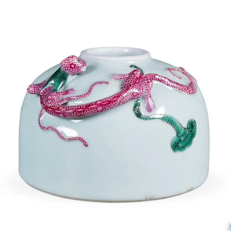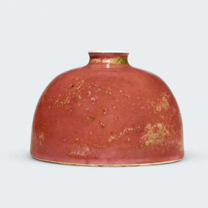 清乾隆 御制洋彩胭脂红地轧道雕瓷镂空“有