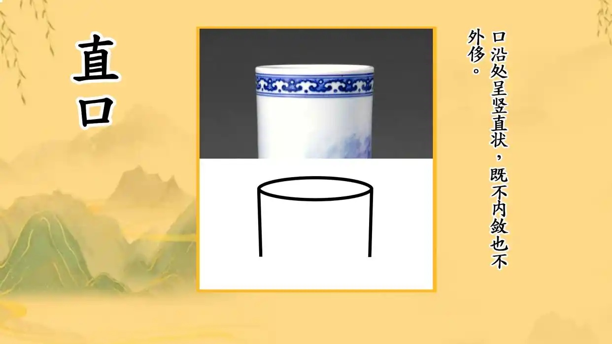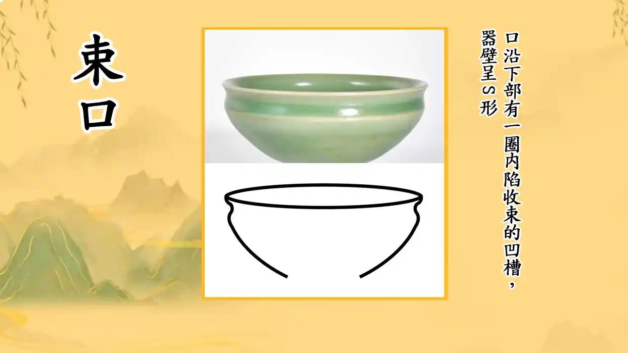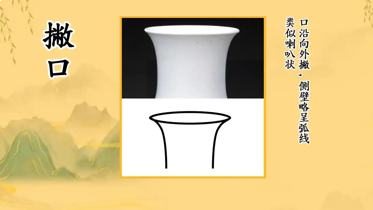按外形划分,大致可以将瓷器口沿分类为10种,它们是:撇口、敛口、敞口、束口、直口、花口、盘口、洗口、唇口、喇叭口。牢记这十种外形,基本上也就了解了90%的瓷器口沿。得空的时候多看看各种器物,再返回来看看本文,很快便可掌握。
