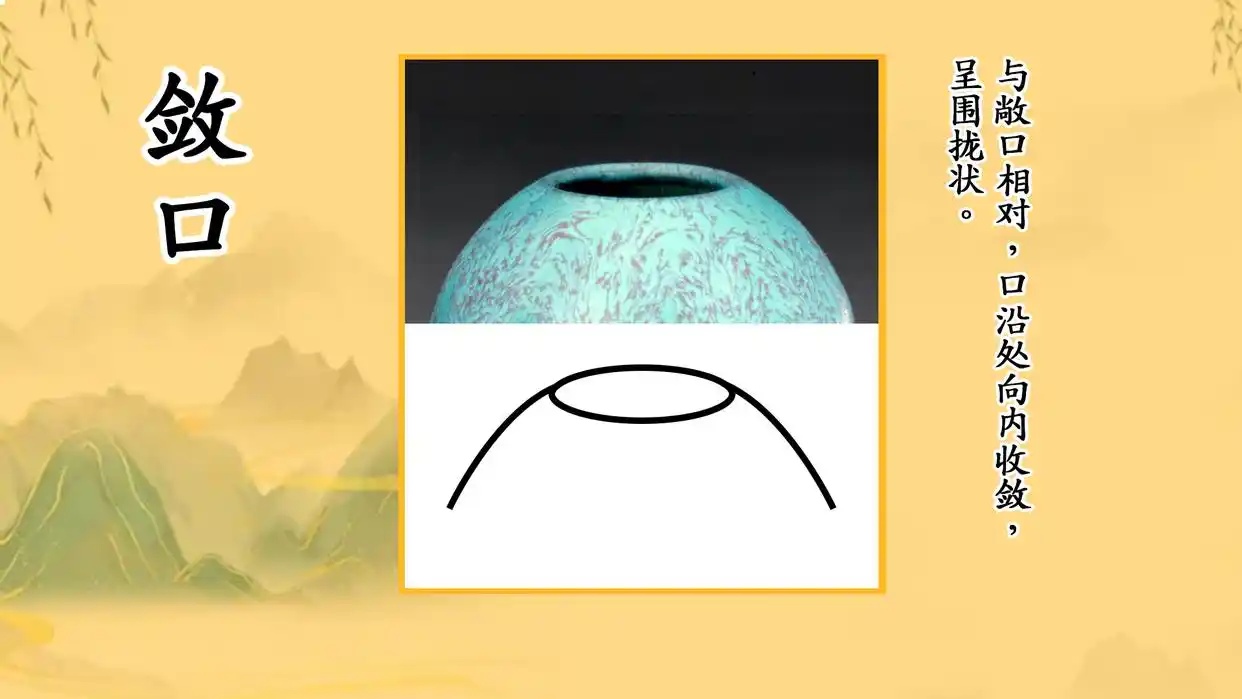 敛口。与敞口相对,口沿处向内收敛,呈围拢状。