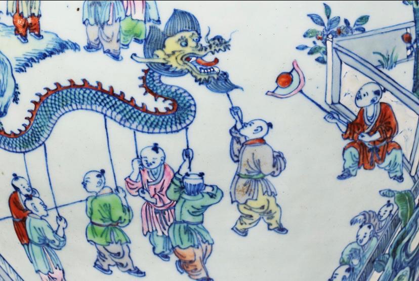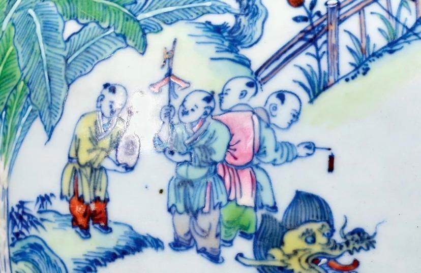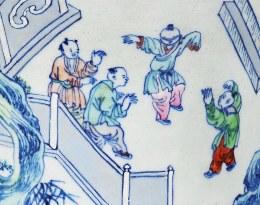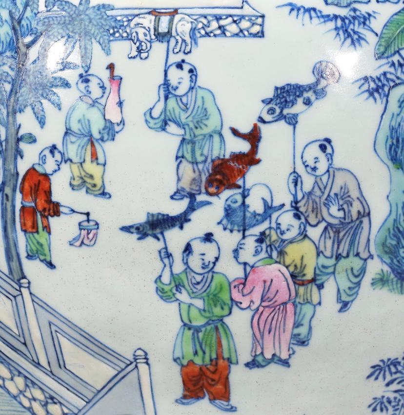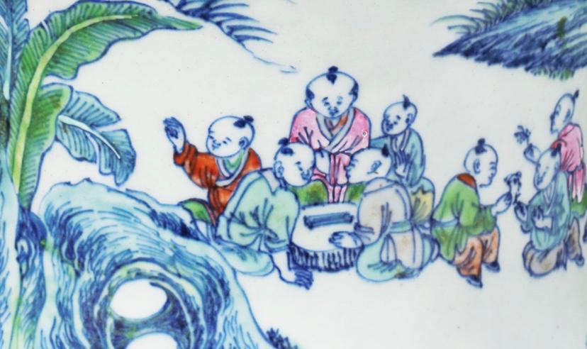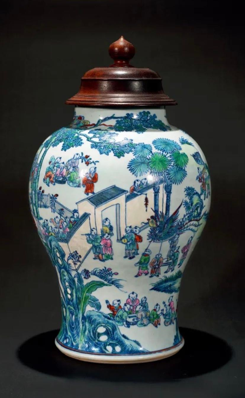 清代青花斗彩百子闹春图大罐
