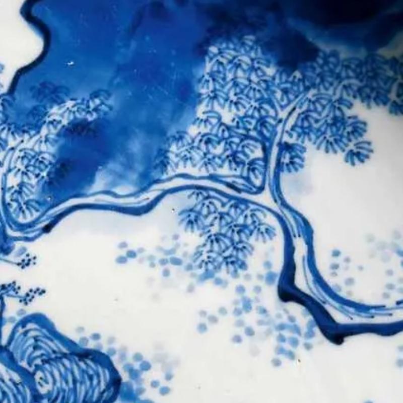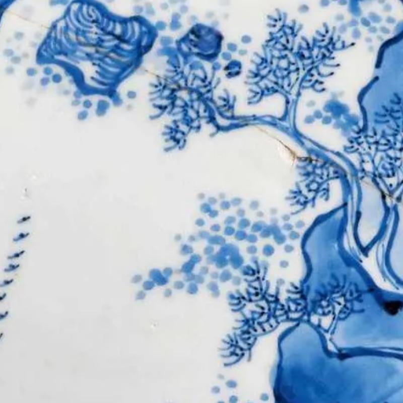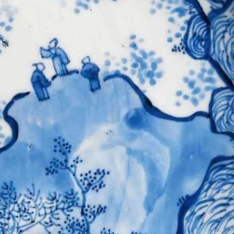 清代青花人物图六方花盆