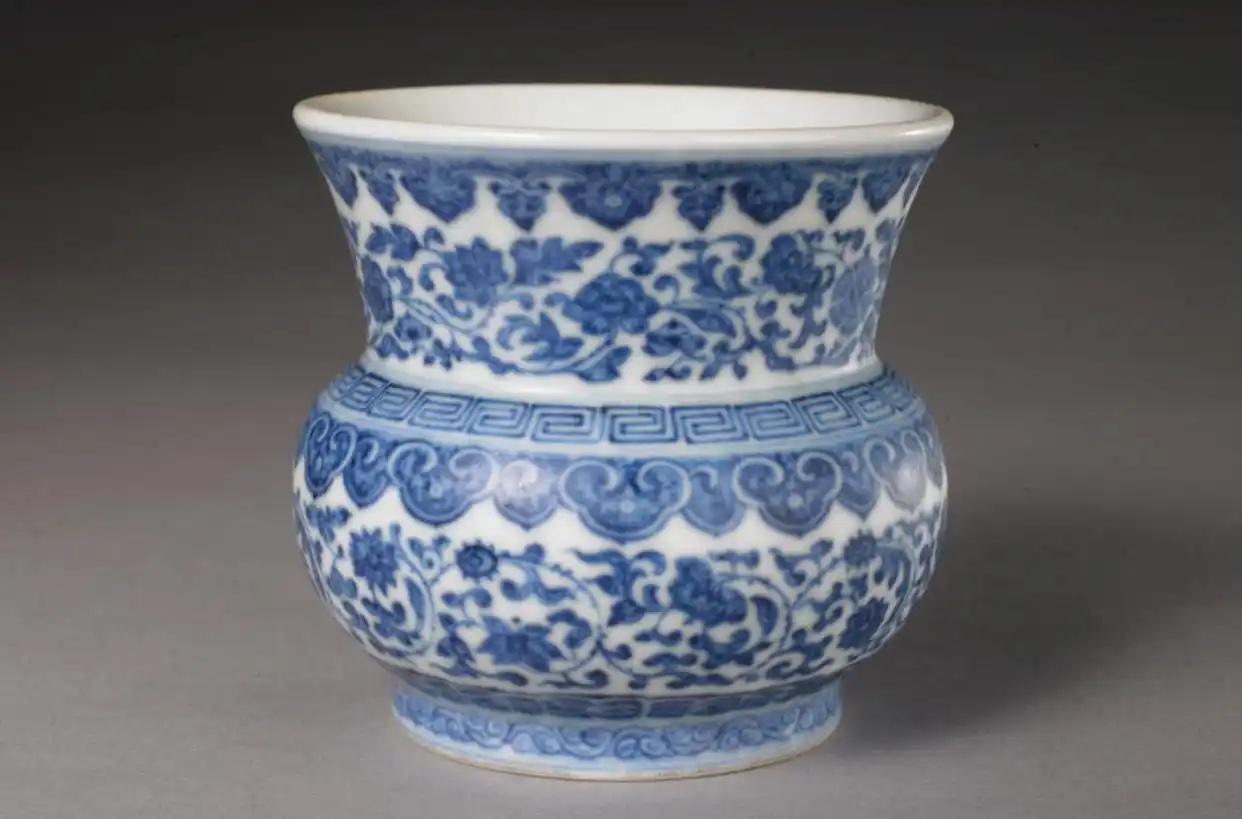 明清时,随着制瓷工艺越来越成熟,朴实无华的渣斗摇身一变穿上了五彩斑斓的外衣。它再也不是那“遭人唾弃”的小罐罐啦,渣斗登堂入室被放置于床边和几案上,用来盛放细小废弃物品。青花、粉