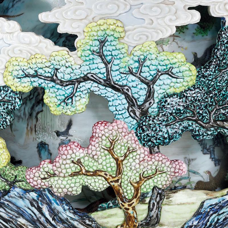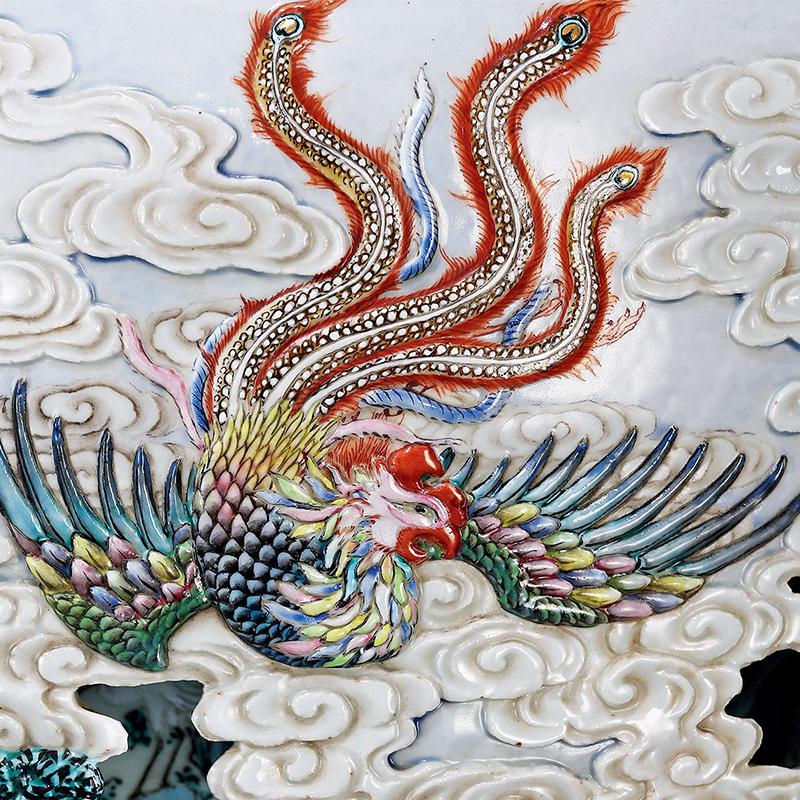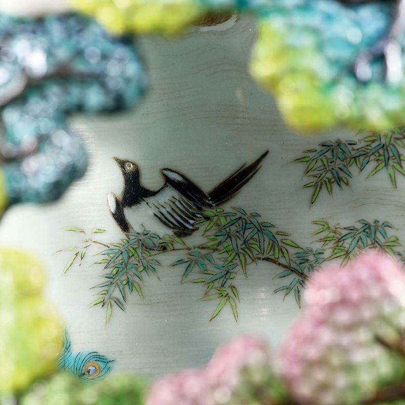 清乾隆 御制洋彩胭脂红地轧道雕瓷镂空“有凤来仪 百鸟朝凤”图双