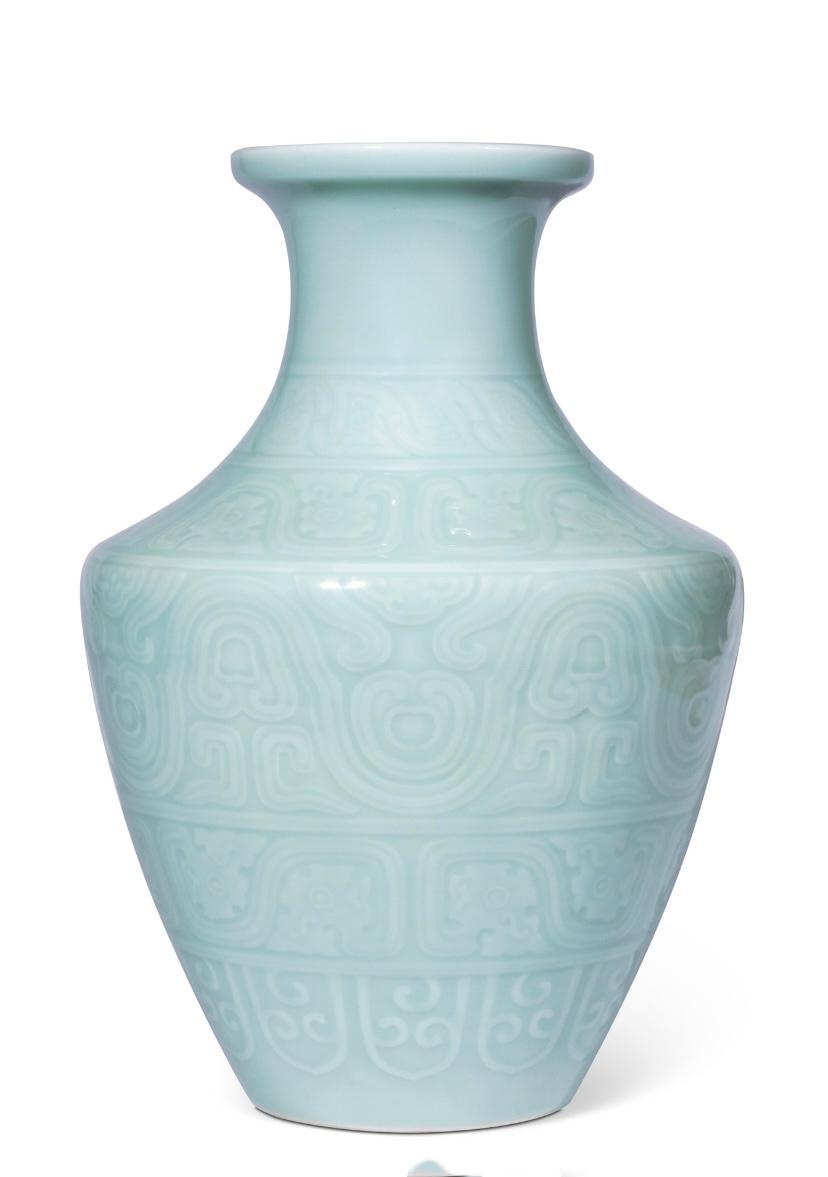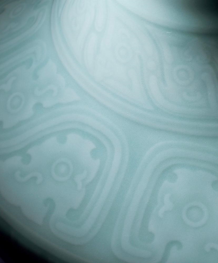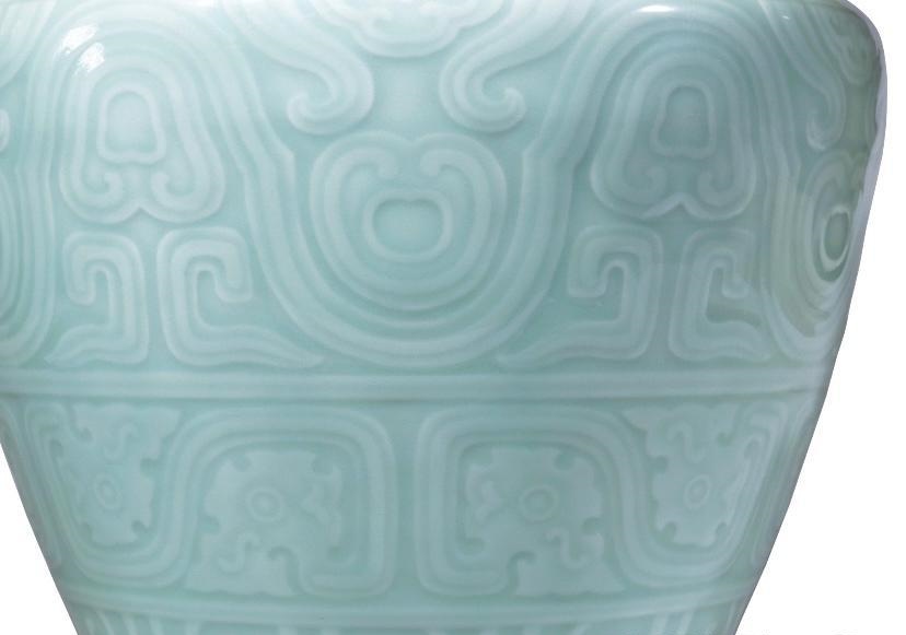 粉青釉刻仿古夔龙纹罍式尊