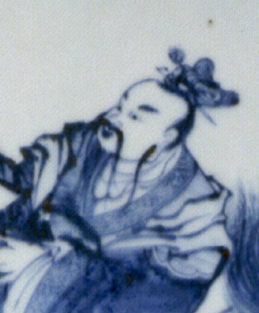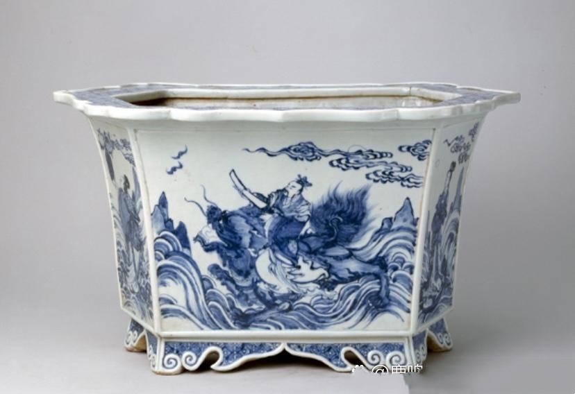 清代青花人物图六方花盆