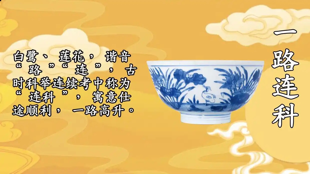 一路连科。白鹭、莲花,谐音“路”“连”,古时科举连续考中称为“连科”,寓意仕途顺利,一路高升。