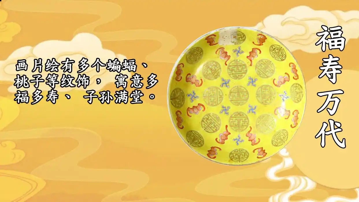 福寿万代。画片绘有多个蝙蝠、桃子等纹饰,寓意多福多寿、子孙满堂。
