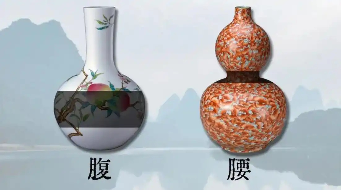 何为“腰腹”?以上下观察,瓷器中间的部分,横向凸起为腹,收敛为腰。