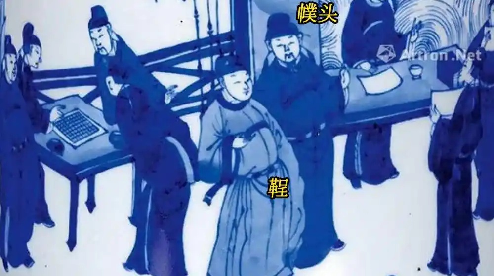 特征:画片中共18人,全部男性,身上服饰有典型的唐代特征,头戴幞(fú)头,腰间系鞓(音同“听”,隋唐时期男性腰带),其中或有交谈状,或有人伏案阅读。