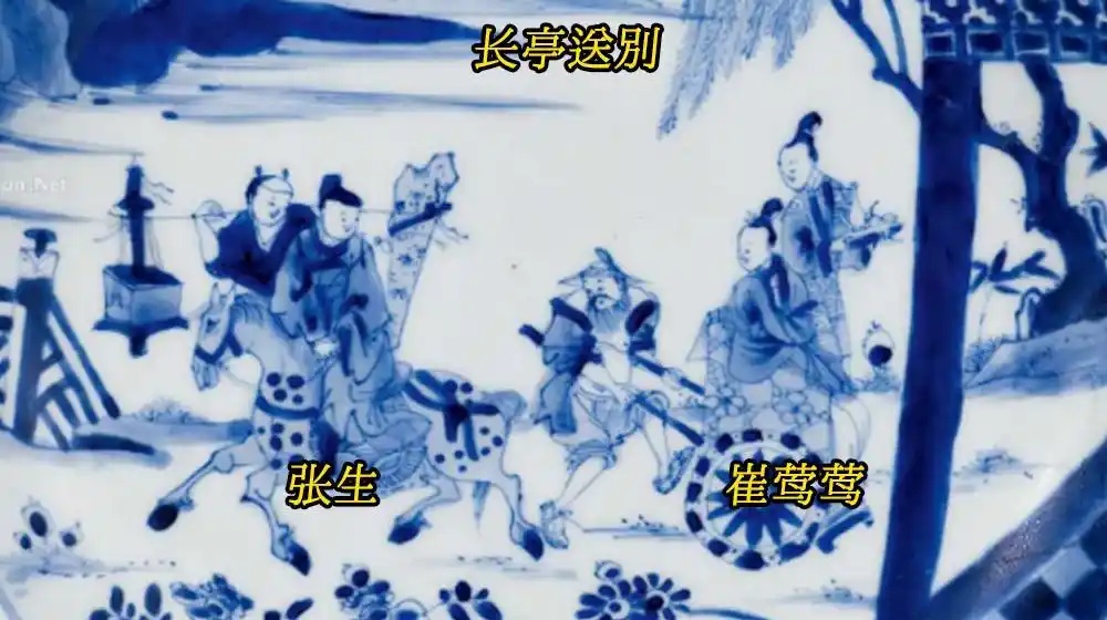 典故:出自《西厢记》的片段,也是西厢记最被广泛流传的桥段。崔莺莺和母亲送张生赴京赶考,十里长亭摆下宴席。崔府夫人执意让张生去考取功名才可娶崔莺莺,而张生自己本人也有意参加科举来获得功名,唯独崔莺莺不愿张生离开,却也无力挽留,只得独自悲伤,难舍难分。