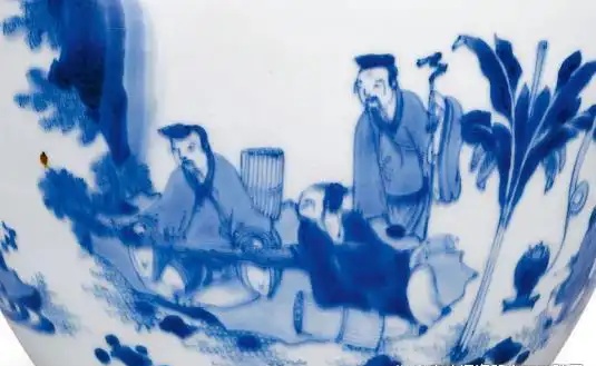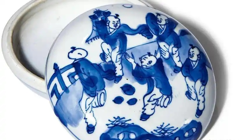 画片特征:绘画中最主要的判断依据是五个人,大多数画片是五个孩童,少数也绘成5个成年男性的,或身穿朝服,或有的清代民窑作品五个男性都是士绅模样。