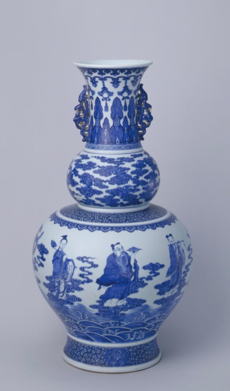 清 青花八仙过海过海图夔凤耳葫芦瓶