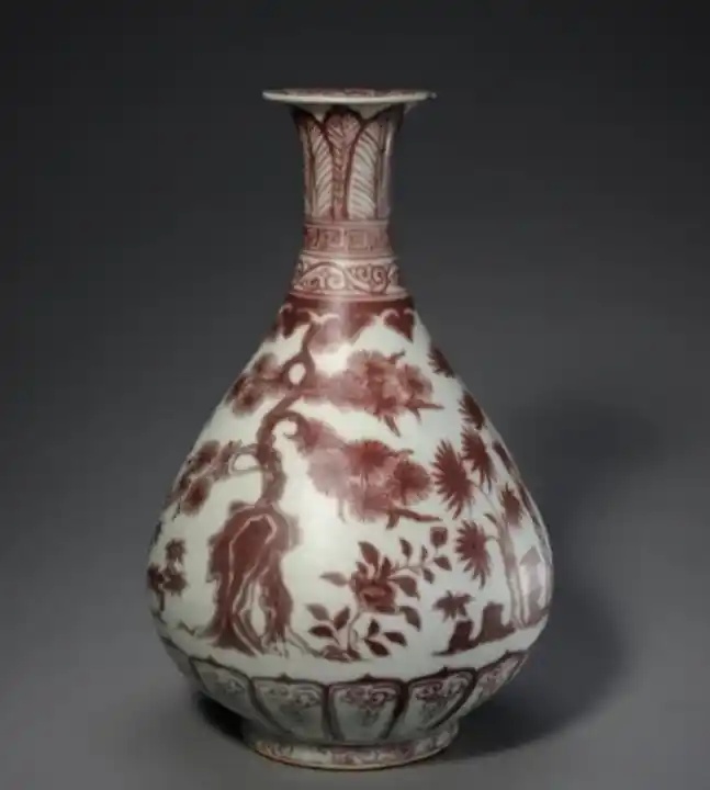 釉里红,是将含有铜元素的颜料绘制在胎坯上后,施透明釉再烧成的深红色釉下彩瓷。