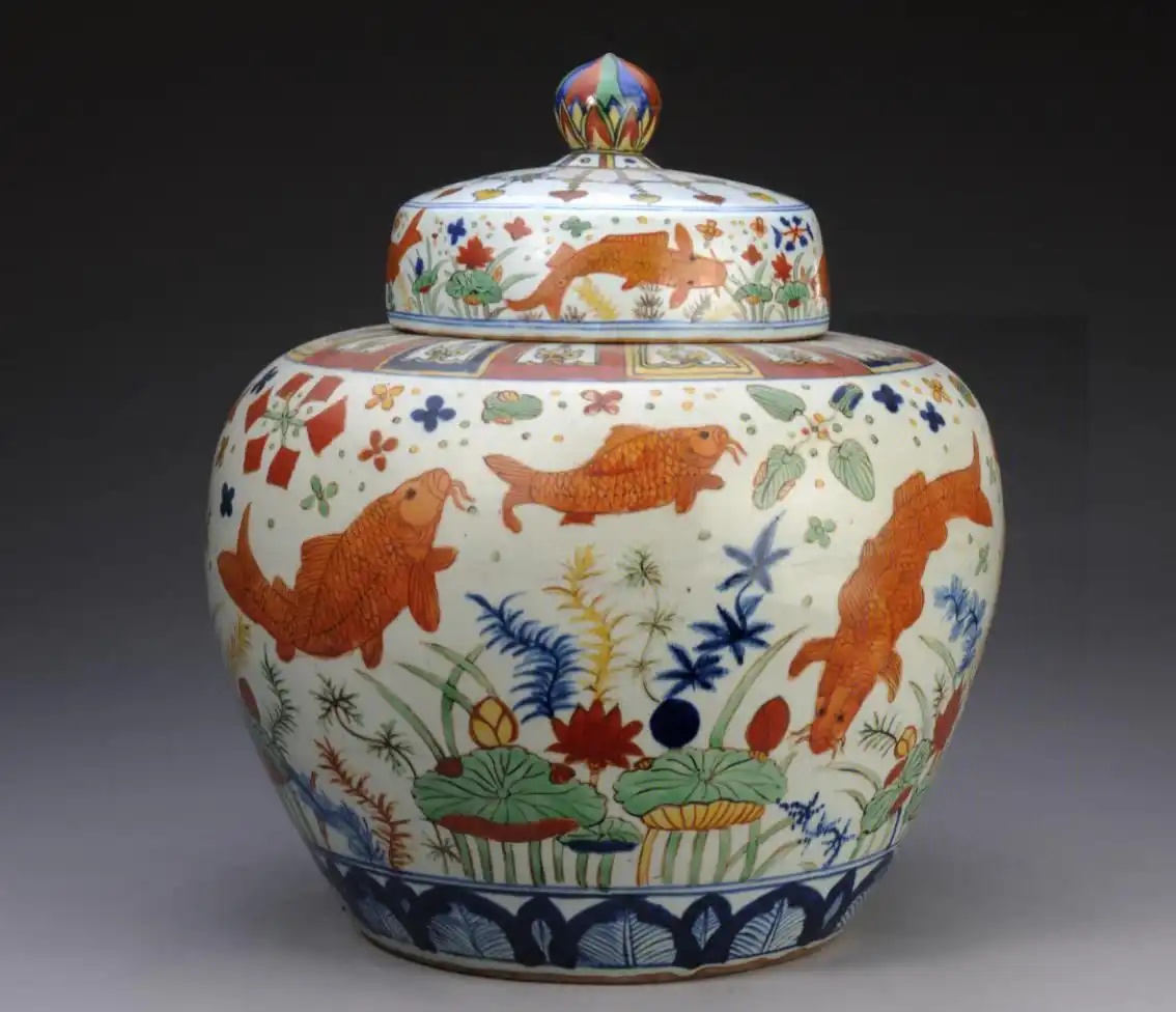 五彩,成熟于明代的釉上彩绘瓷器。在已烧成的白色瓷胎上以矾红勾线,其他颜色平填,红黄蓝绿等色彩为主,绘制后入窑低温烧制。说是五彩,但其实颜色数量并无一定。