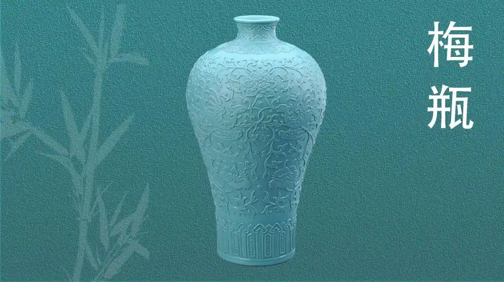 梅瓶。小瓶口,短脖子,宽肩膀,瘦小腿,圈足底。整体看上去,是个倒三角,古时曾为酒具,有天下第一瓶的美誉。