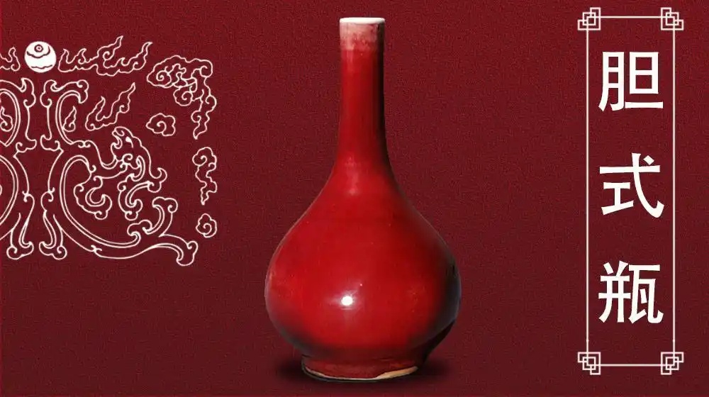 胆式瓶。又叫“悬胆瓶”,形如一颗吊悬着的苦胆因而得名。胆式瓶与玉壶春瓶颇为相似,都是溜肩圆腹,最大的不同之处在于瓶口,其瓶口多是与颈竖直一齐,且颈部较长,口沿或少有微撇。