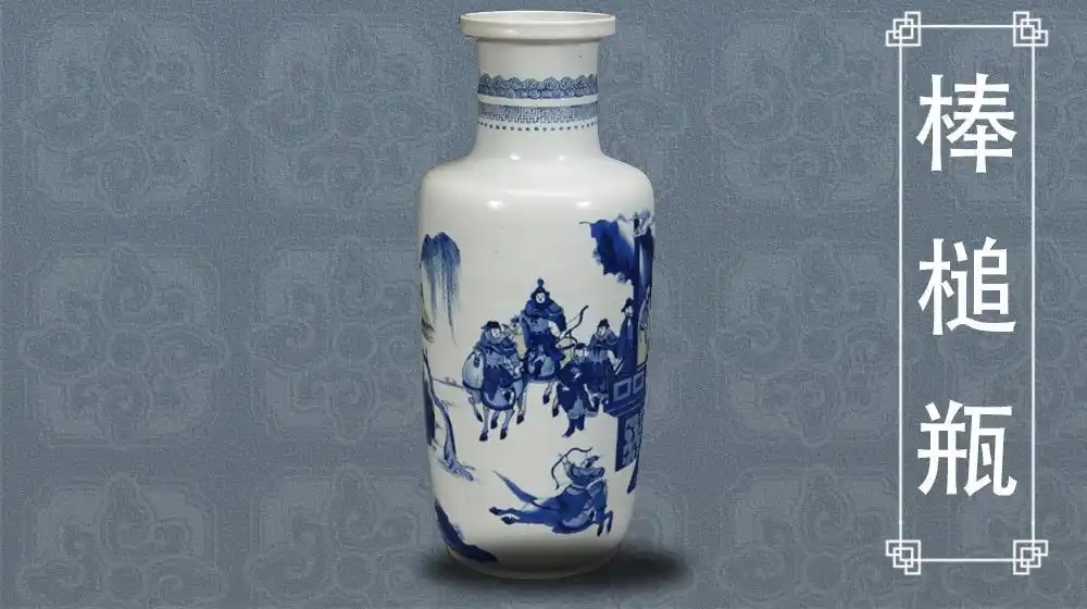 棒槌瓶,形似棒槌的一种盘口瓶。盘口直颈,肩腹交接处转折较硬,小圆角,也就是常说的圆折肩。瓶身呈长筒型,下部分稍窄,圈足。