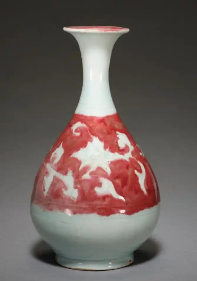 元代景德镇成为中国新的制瓷中心,元人除了喜好白蓝两色,亦对红色尤其热爱,这象征着太阳与火的颜色,给人以温暖和希望。都知道元代青花传世稀少,如今都价格不菲,通体施红釉的瓷器更是凤毛麟角,故宫馆藏红釉刻云龙纹壶,红釉热烈均匀,堪称是元代完美的红釉作品。