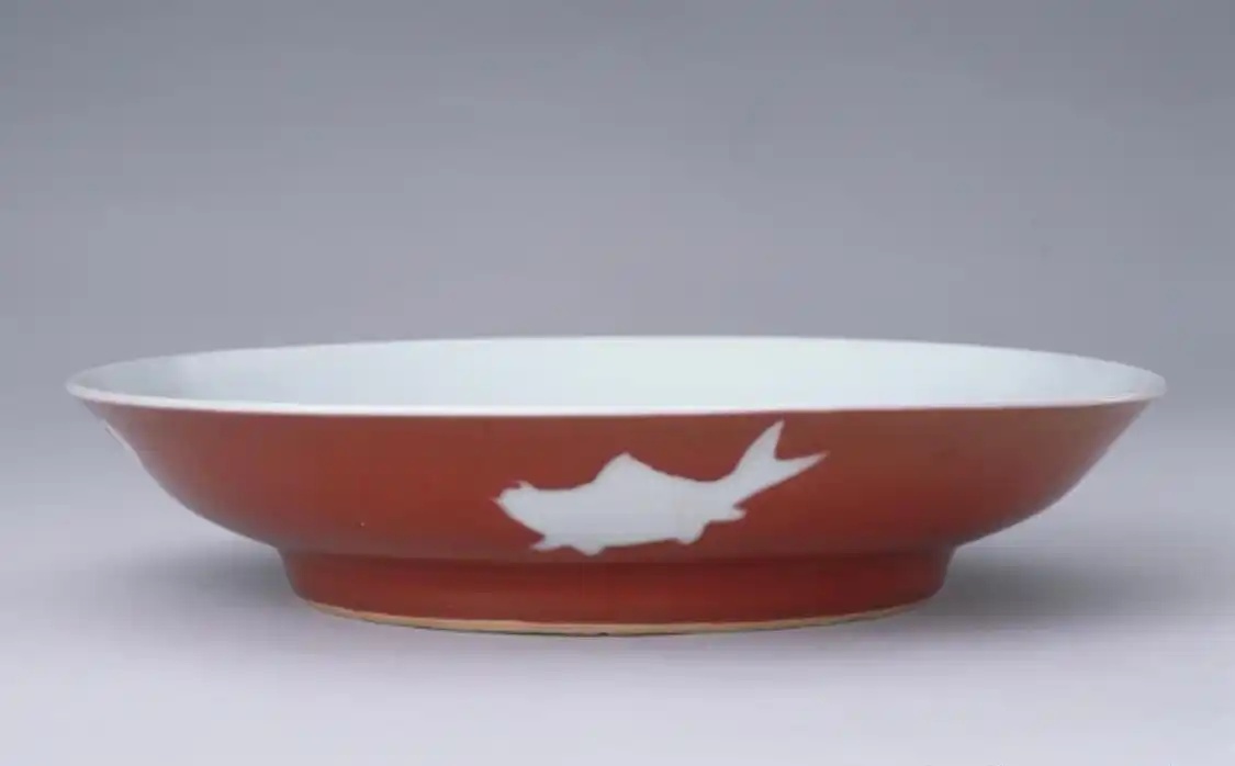 霁红釉拔白四鱼纹盘 清代