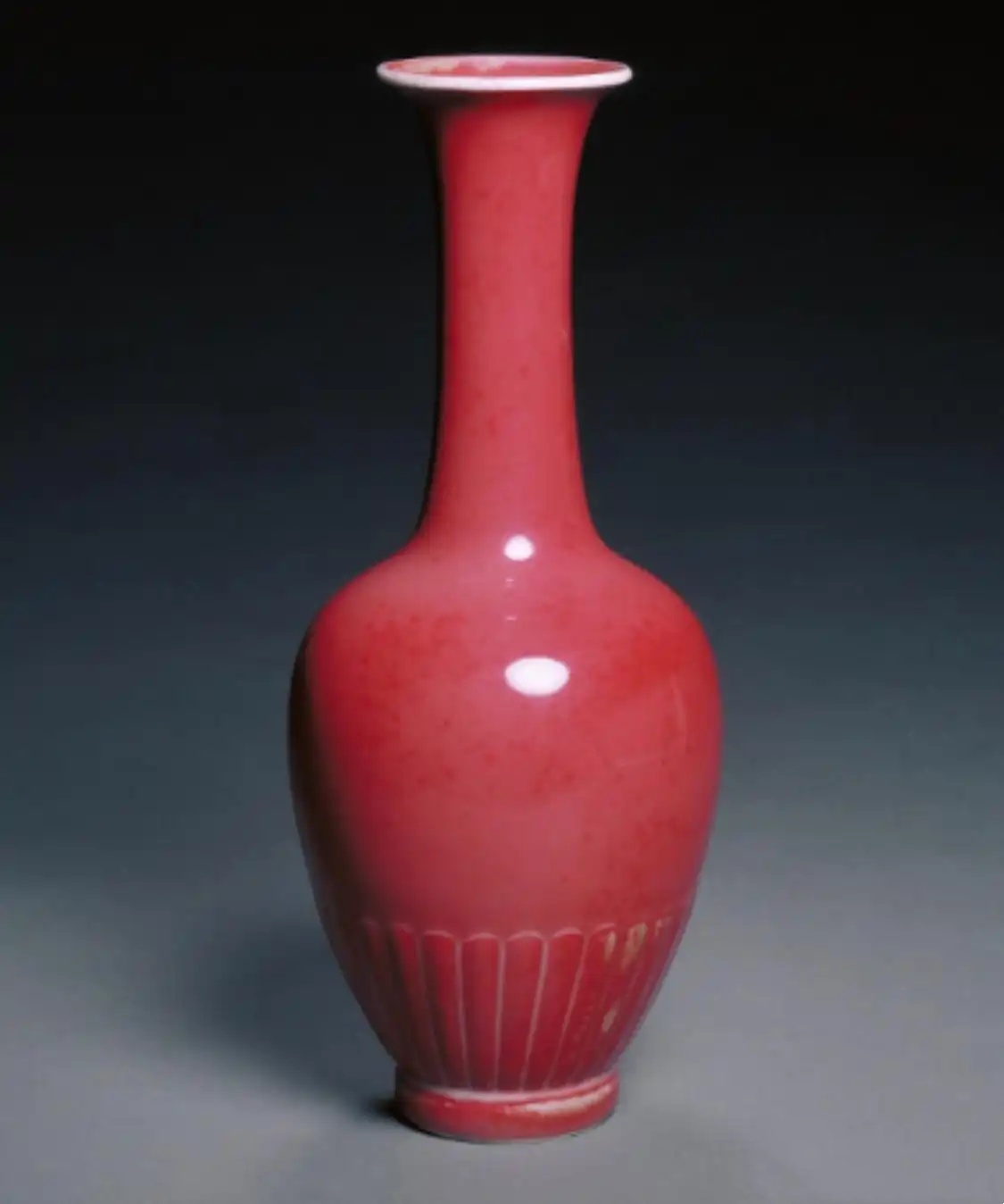 祭红釉,红中贵族,宫廷独享。祭红釉又叫“祭红釉”“宝石红”,是一种高温釉,创烧于明代早期的永、宣时期,多用于皇家祭祀的礼器,故在明代普遍称为祭红。因烧制工艺繁复,且耗资巨大,明代晚期技艺失传后,直至清代中期才复烧成功。督陶官唐英取“朝霞霁色”的谐音,将其命名为霁红,使其平添了几分浪漫诗意。