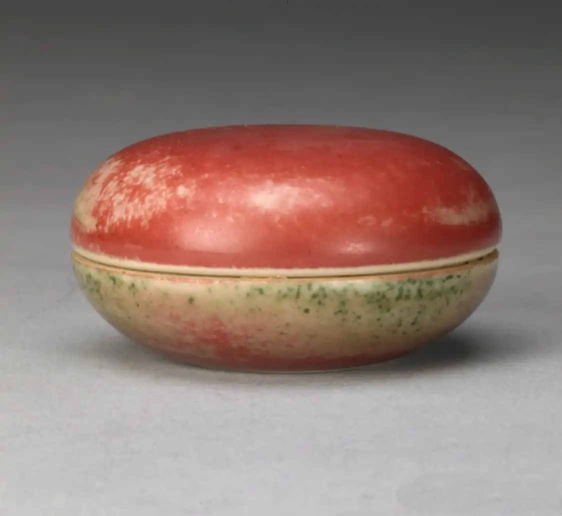 豇豆红釉印泥盒 清代