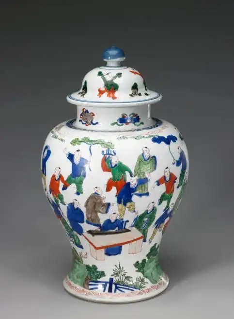 清五彩婴戏图将军罐