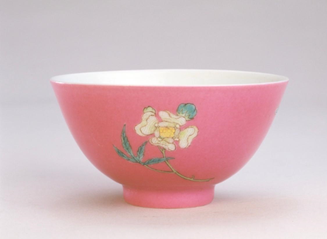 胭脂水釉粉彩花蝶纹碗 图1