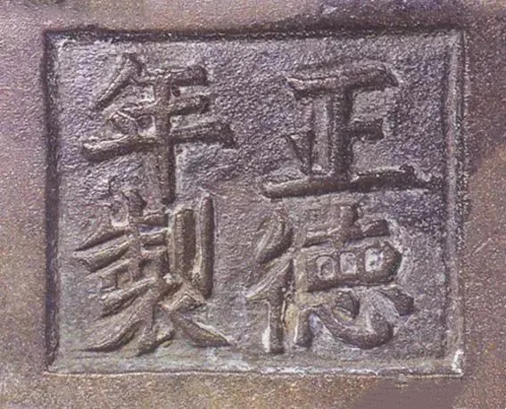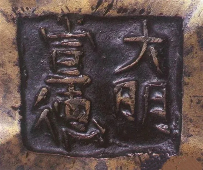一 官款:宣德炉的官款,一般称之为“国朝款”,包括明朝永乐、宣德、正德、成化、崇祯,清朝康熙、雍正、乾隆各朝款识。常见为“大明XX年制”、“大清XX年制”的六字款,或"XX年制"四字款。如:大清宣统年制;大明成化年制;宣统年制;崇祯辛末年制;大明隆庆年制;大明崇祯年制;乾隆年制;康熙六十年制;大明正德年制(正德年没有御制,此款是官制,还是年份款不详);康熙辛亥庚生氏。炉腹内底部施念峰制;大清乾隆元年恭制;大清乾隆年制;45有琴居用;大明宣德四年,内神宫太监掌监事臣阮安督造;大清康熙年制;崇祯八年制;崇祯;壬午冬子俊制;