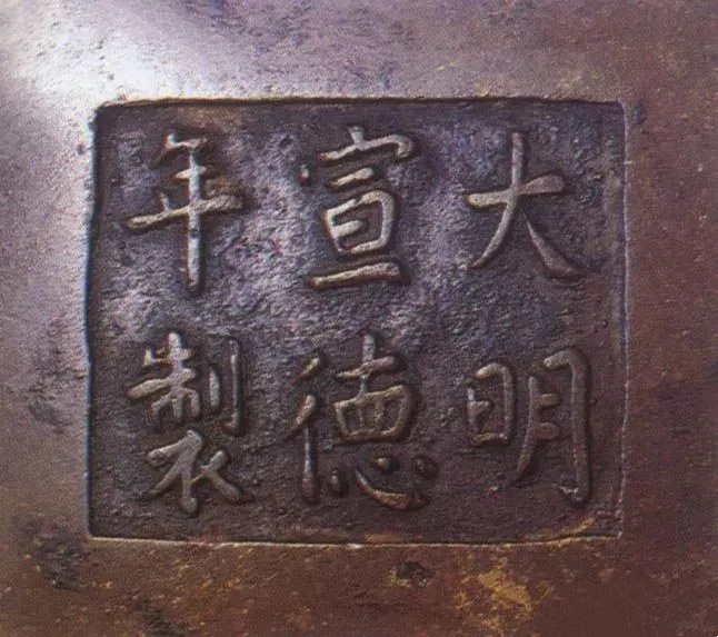 以四字和六字款最为常见,十字款为“工部尚书敕赐炉宣德制”,十二字款为“宣德三年五月敕赐勋名之鼎”。