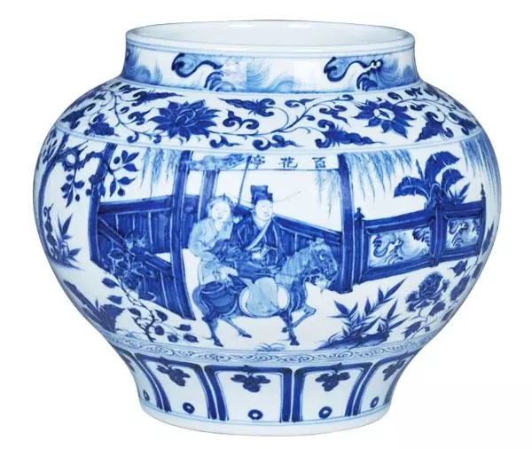 所绘场景出自元代著名作家王仲文的《孟月梅写恨锦香亭》,故事叙说了唐玄宗时期才子佳人与孟月梅浪漫而曲折的爱情故事。唐玄宗时,长安书生陈圭游孟家花园,与孟女月梅相遇于锦香亭畔,两人一见钟情,私定终身。