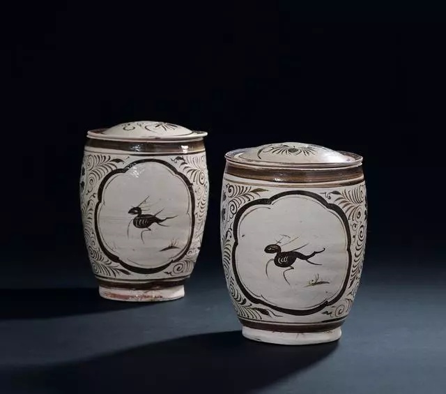 南宋 吉州窑奔鹿纹盖罐一对