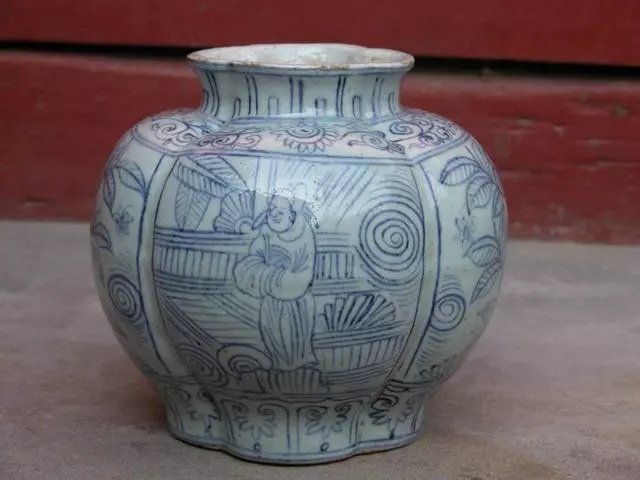 乐平窑青花人物花卉图罐