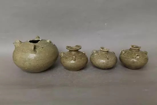 ②窑址在江西临川县白浒渡一带,也称“白浒窑”。1963年发现。烧造年代为南朝至宋代。主要产品有碗、罐、缸等,以碗为主。器物多为平底,底心稍内凹,也有部分圈足器。大多胎骨粗糙、厚重,胎土灰色。釉色多呈青绿、酱褐,也有少量豆青色。器内施全釉,外施釉不及底。釉面常开细冰裂纹,釉水不均匀者呈泪痕状。纹饰较简单,多为葵花形纹,罐类器物的肩部,常以铺首为饰。