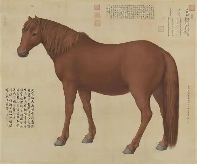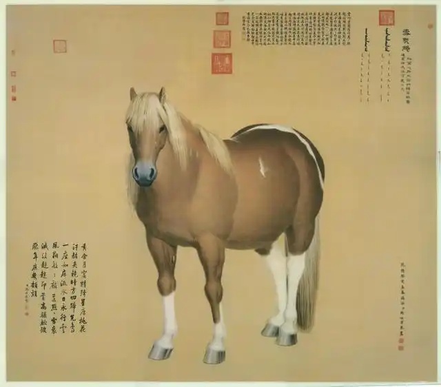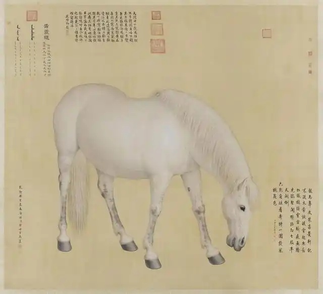 乾隆八年,郎世宁奉旨绘制十匹骏马的肖像,十幅《马图》大画依照真实的骏马大小所绘。