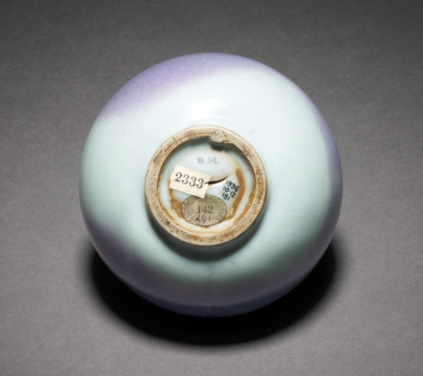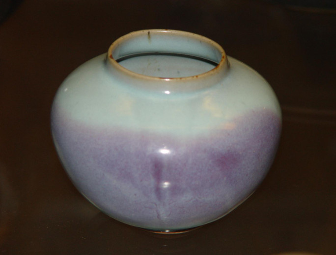 宋 钧窑月白釉紫斑鸡心罐 大英博物馆藏