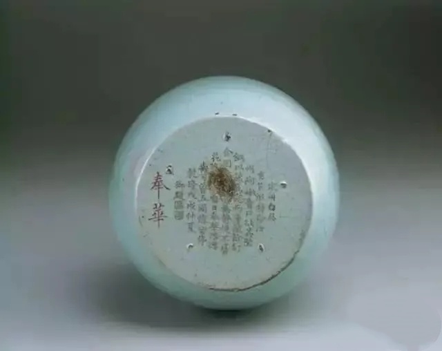 在一部分汝窑瓷器的外底錾刻有“奉华”“蔡”“寿成殿皇后阁”“甲”“乙”“丙”等铭文。其中“奉华”“寿成殿皇后阁”是汝窑瓷器进入宋代宫廷后,由宫廷玉作匠师刻于器底的。“奉华”是宫廷“奉华堂”用器的标志,“奉华堂”是南宋高宗时德寿宫的配殿。“蔡”字则是物主的姓氏,有人认为是蔡京用器的标志。